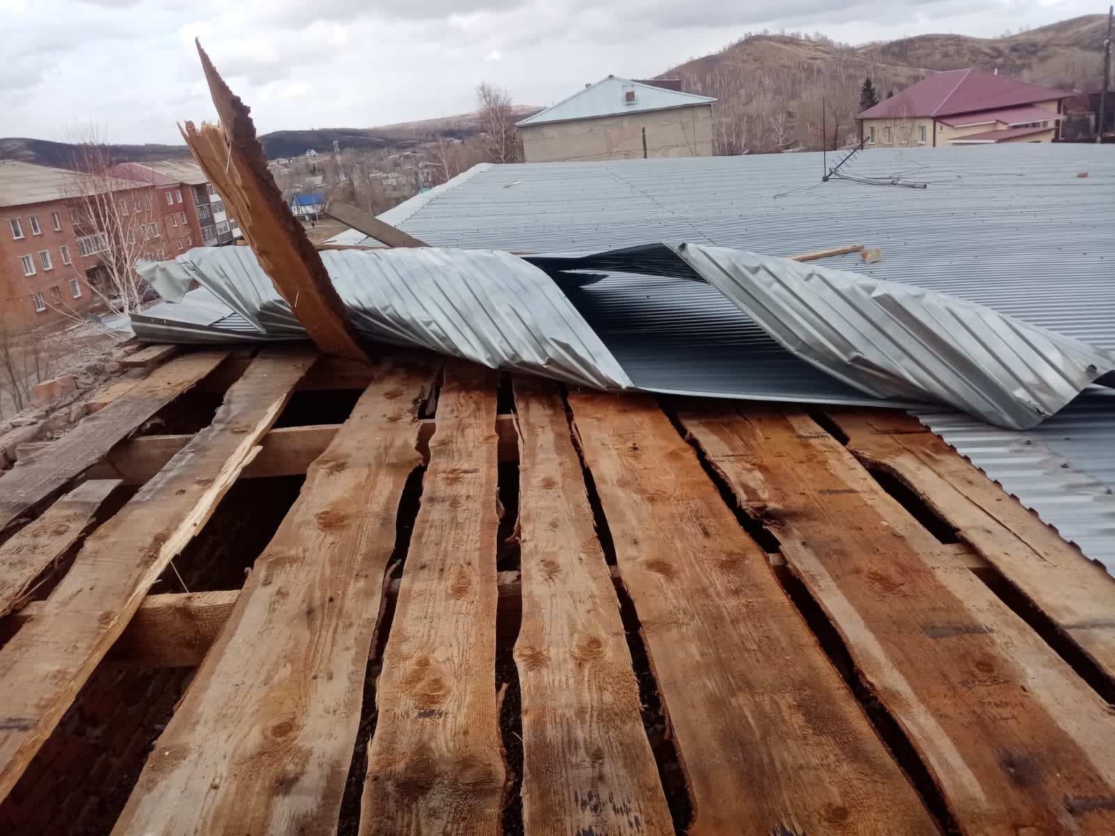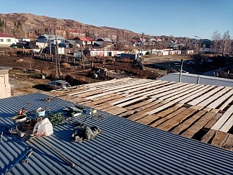 На фото вы можете видеть, как выглядела крыша после разгула стихии, и какой она стала через три дня, благодаря ответственной работе всех членов бригады! Спасибо вам огромное, мастера, пустьвсе ваши объекты радуют змеиногорцев!