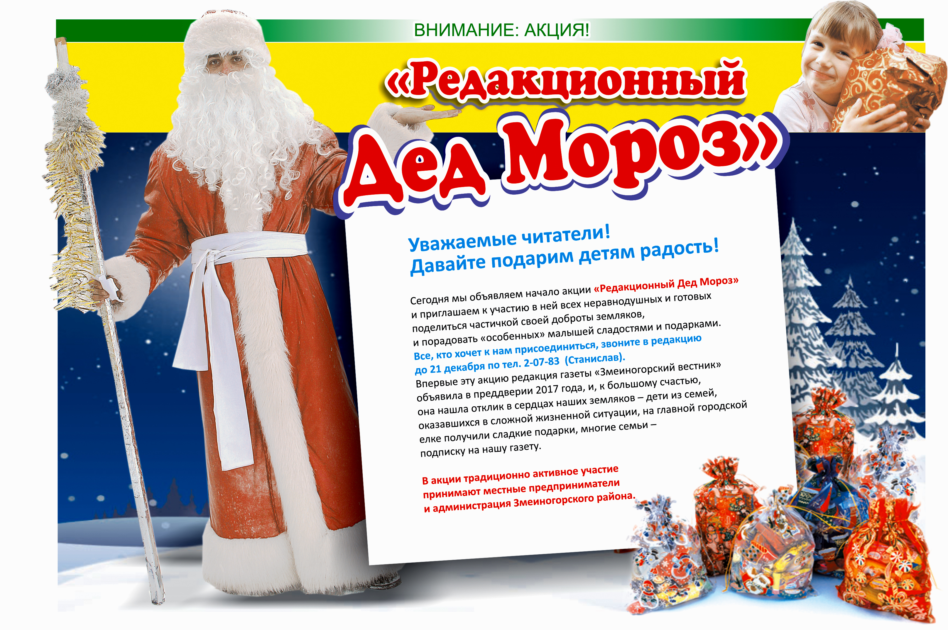 Ваша помощь может быть различной: вы можете сдать любую сумму на подарки для детей, или купить конфет, фруктов (это уже ближе к празднику), принести в редакцию, где организаторы, под руководством нашего добровольного помощника Петра Бондарева, сформируют подарки!