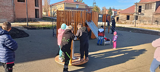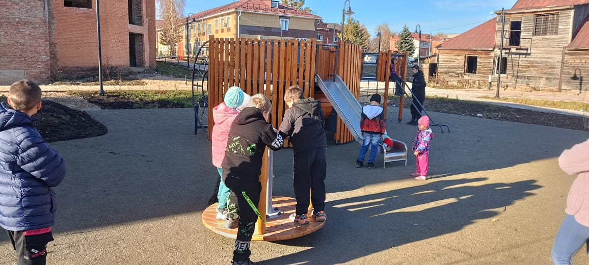 Кроме создания нового красивого места отдыха, куда, как видите, собираются и стар, и млад, на детской площадке, построенной в соответствии со всеми современными требованиями – родители с детками весело проводят время.