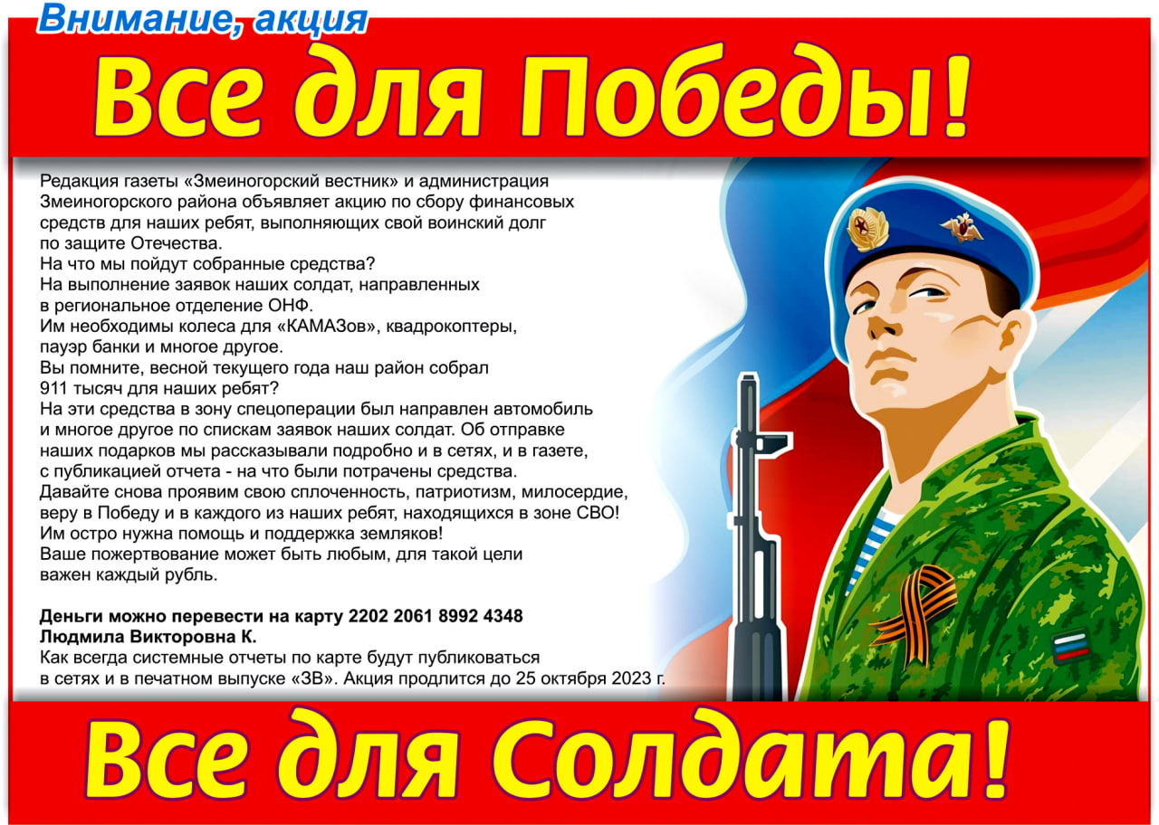Спасибо всем участникам акции за отзывчивость, доброту и веру в Победу! Ждем новых поступлений от наших земляков, чтобы быстрее отправить собранные средства на колеса для КАМАЗов нашим ребятам. Им очень нужны помощь и поддержка земляков!