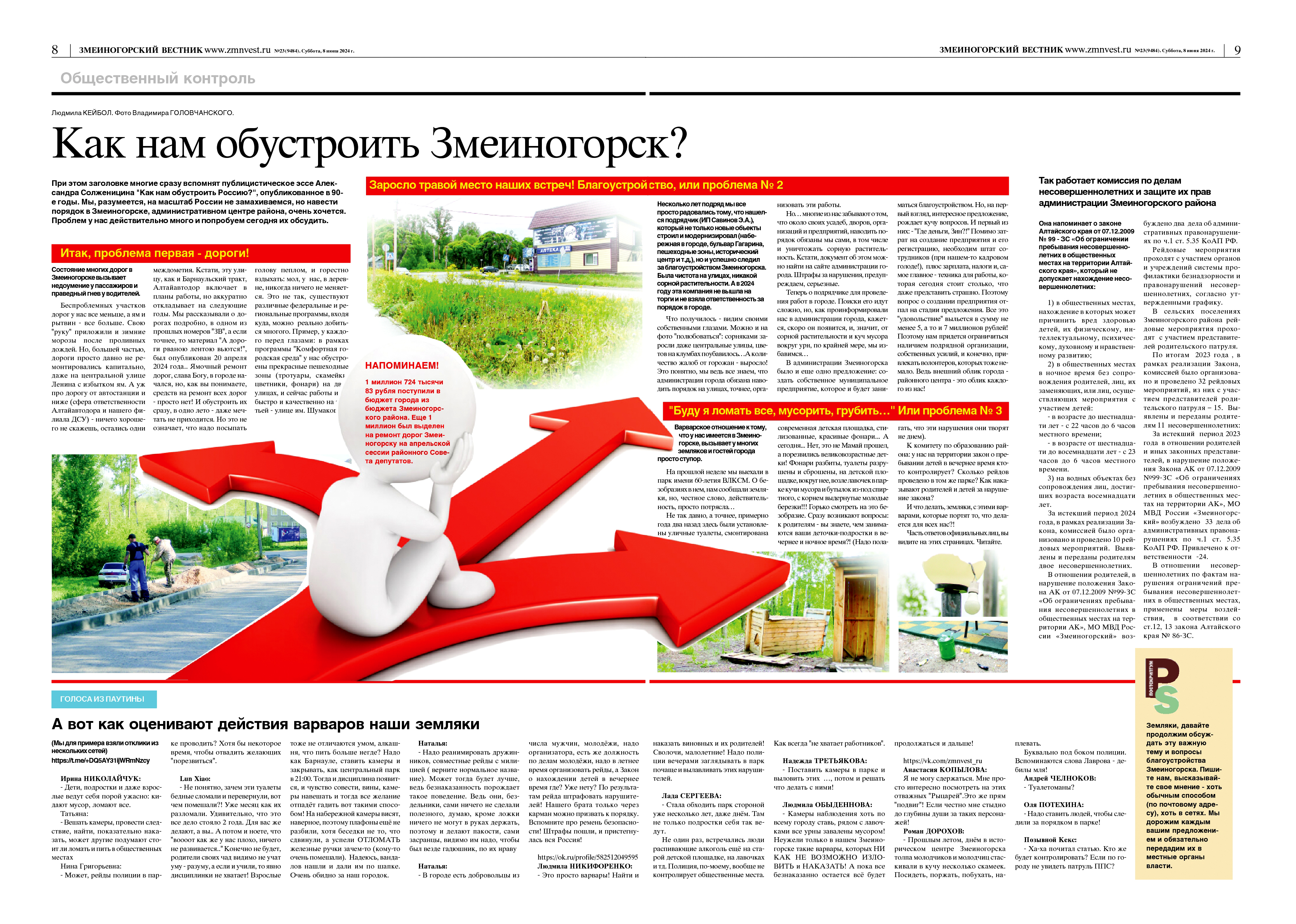 Быстрее открывайте и читайте!В новом выпуске «ЗВ» - много интересного: тема номера по самым острым проблемам благоустройства Змеиногорска.