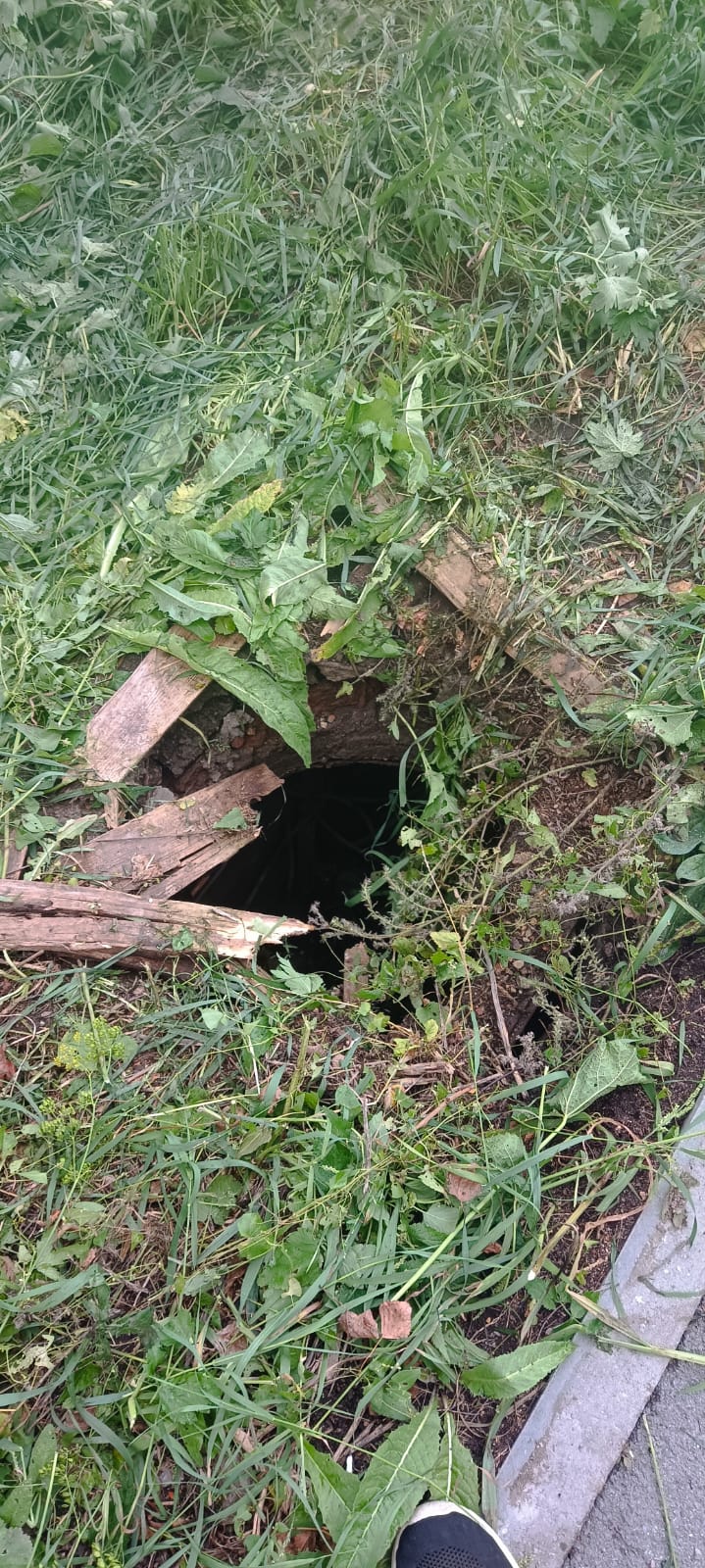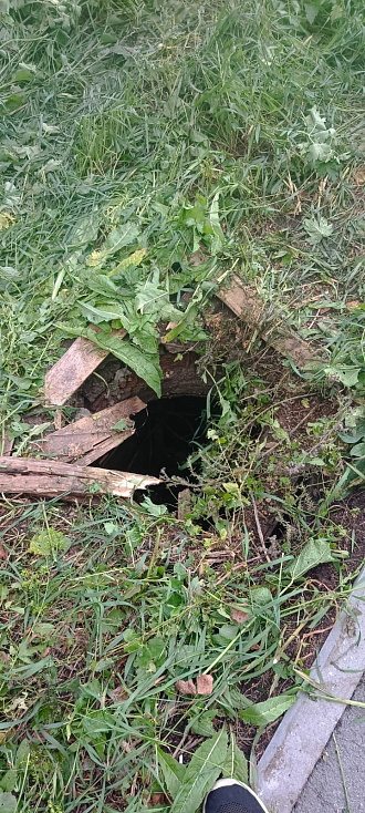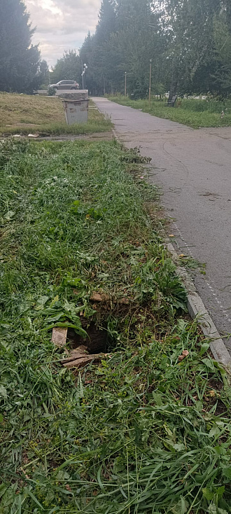- Вчера вечером на улице Ленина косили траву на тракторе. Вот, смотрите на фото, что из этого вышло. Мало того, что трактор, повредил асфальтовое покрытие на новом тротуаре, водитель выкосил траву какими-то клочками, и поломал люк на колодце с водой около дома № 78. Крышки на люке сейчас нет, а яма с водой стала ловушкой для зазевавших жителей!