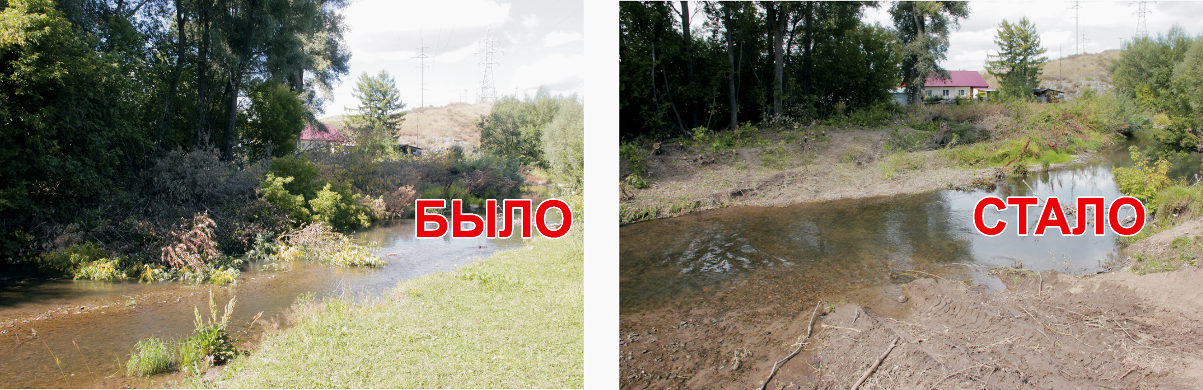 Смотрите на фото: как было и как сейчас выглядит речка.