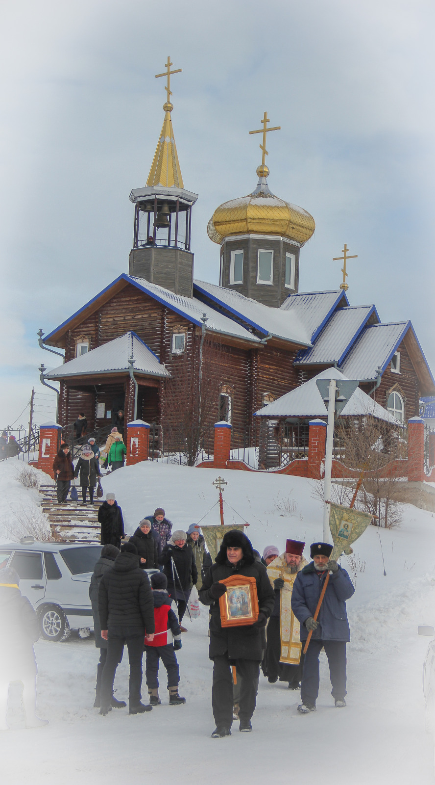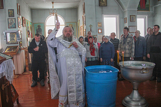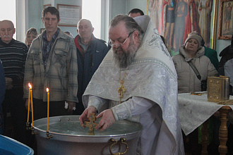 В Змеиногорском Храме Преображения Господня сегодня состоялось торжественное богослужение в честь праздника Крещения Господня, водосвятие и крестный ход к купели на старой плотине.