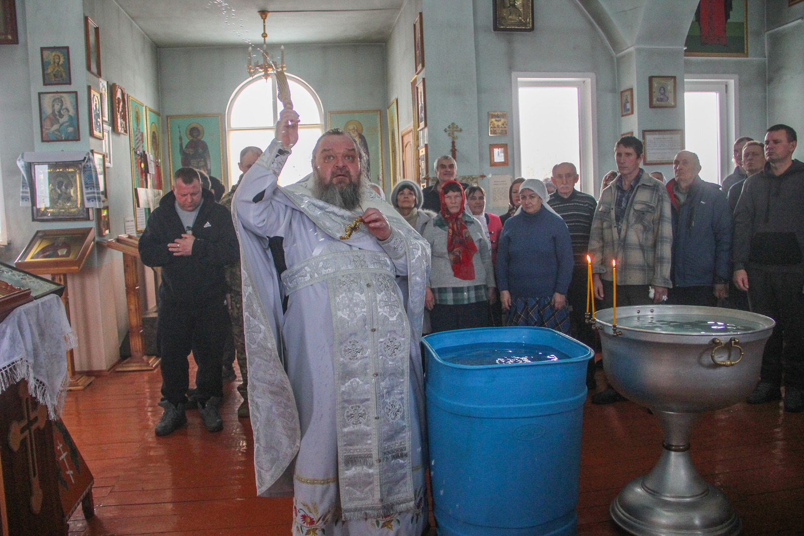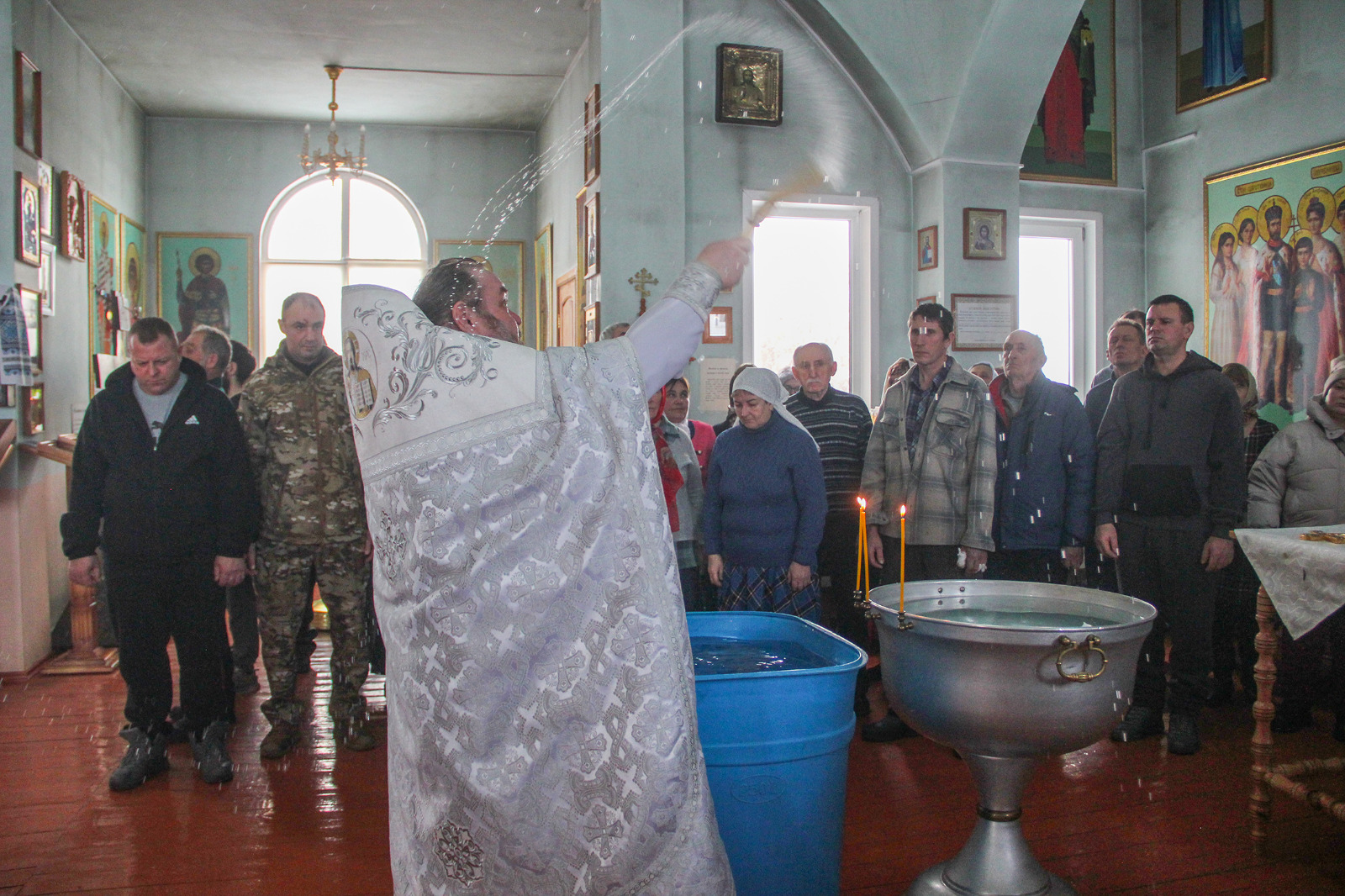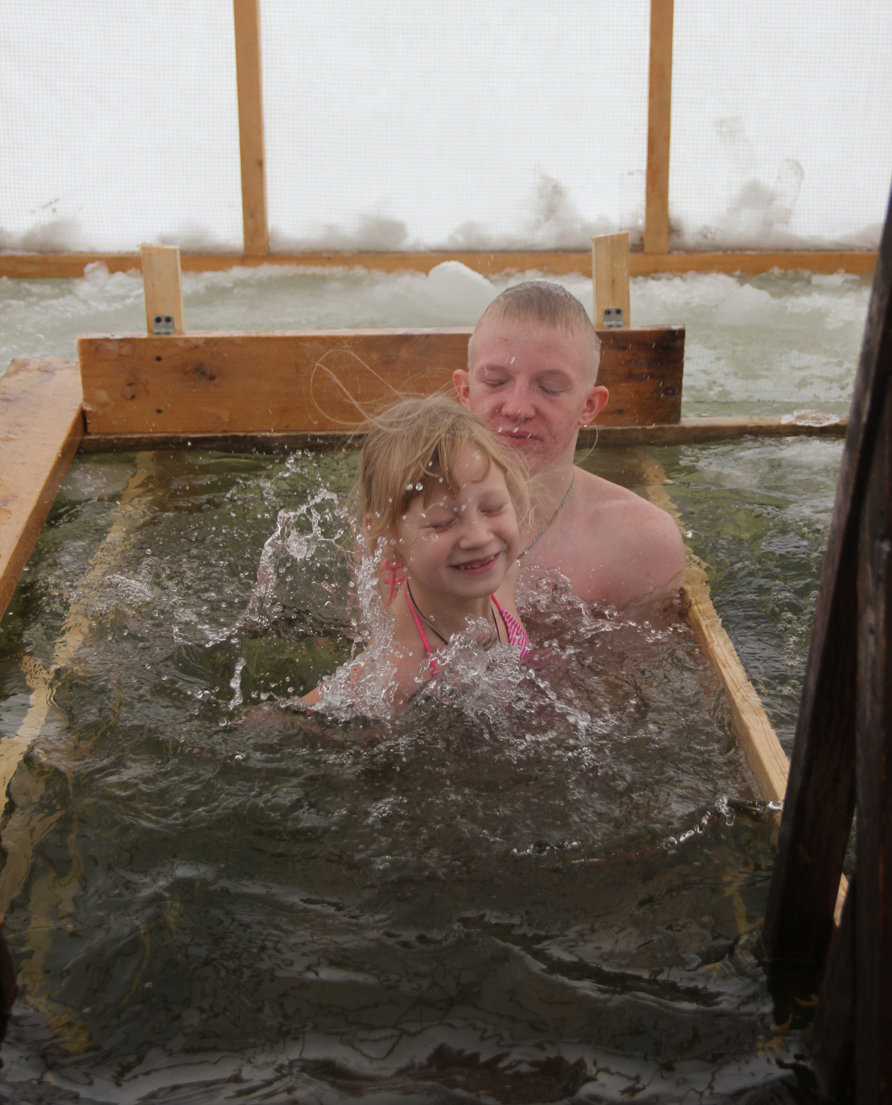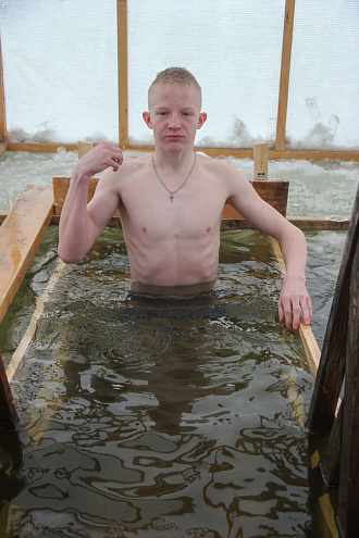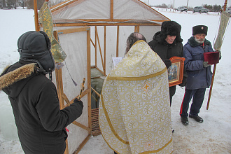 Там тоже прошло освящение купели, прочитаны молитвы и все желающие смогли окунуться в воду.