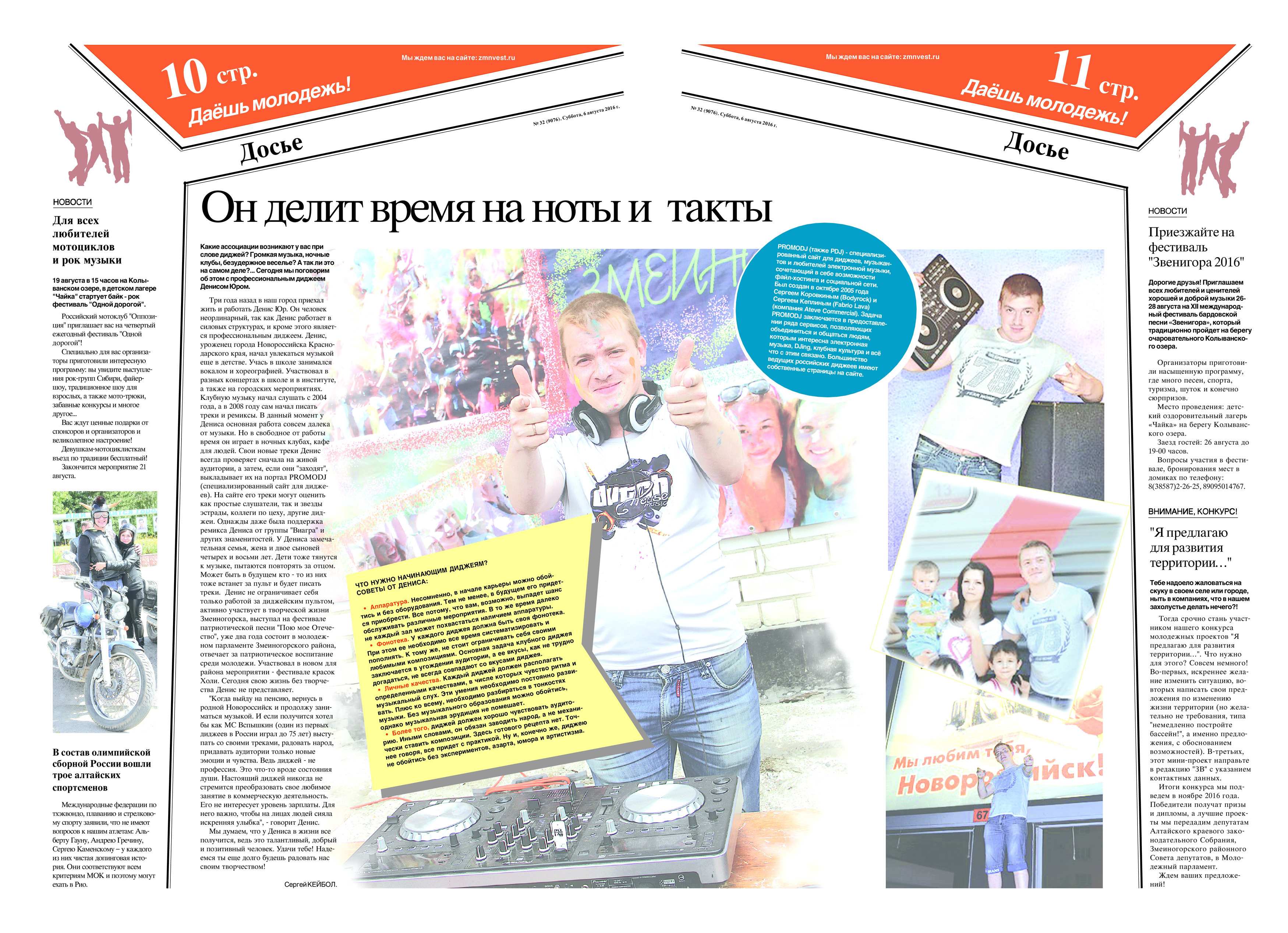 В субботу, 6 августа наши читатели получат новый номер "Змеиногорского вестника". В нем - новости из всех поселений района - "Районный дайджест", специальная вкладка - "Даешь молодежь" и много другой интересной информации. Подписывайтесь на "ЗВ" и покупайте газету в наших торговых точках. Места их расположения на главной странице сайта, внизу.