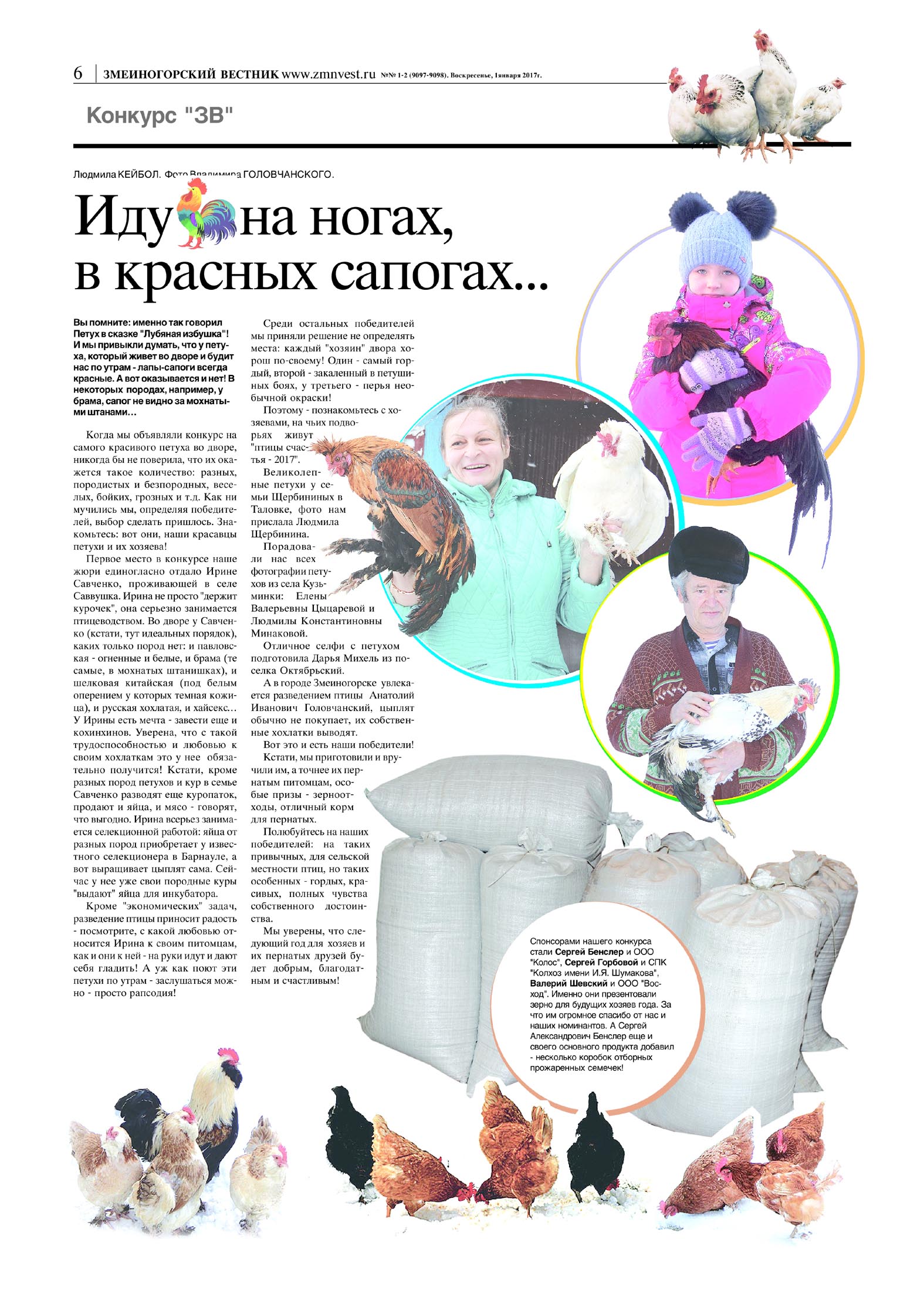 Этот материал появится в газете "Змеиногорский вестник" на следующей неделе. Двум из шести победителей, мы уже увезли призы - зерноотходы от наших спонсоров.К сожалению, бураны не позволили нам проехать в поселок Октябрьский, села Кузьминку и Таловку. Именно там проживают еще четверо номинантов. На следующей неделе наши подарки попадут к победителям!