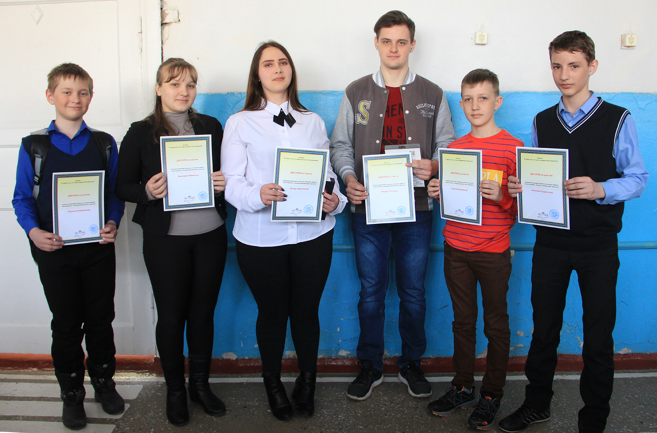 Сегодня эти школьники из села Барановка и Гальцовка получили призы и дипломы за победу в конкурсе "Я горжусь тем, что живу на родине Ильи Шумакова!" Среди победителей на снимке нет одного - Михаила Иветского. Ему передадут диплом педагоги школы.