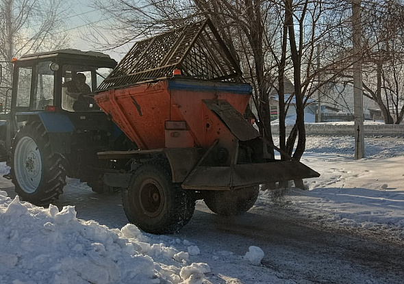 Для того, чтобы гулять по тротуарам можно было безопасно, их периодически подсыпают песком. Вот так это происходит!