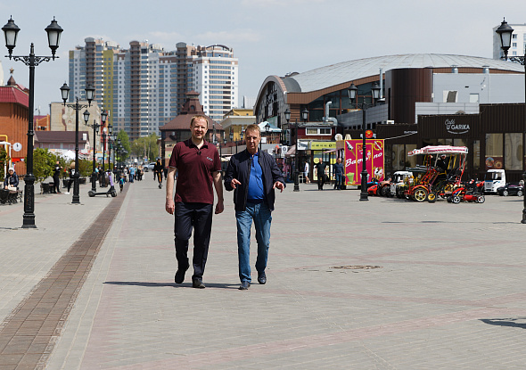 Губернатор Алтайского края Виктор Томенко в выходные прогулялся по Барнаулу вместе с главой города Вячеславом Франком и осмотрел места в центре, где идет благоустройство.
