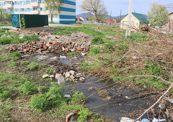 В районе бывшей котельной №4 текут ручьи и раскидан мусор.