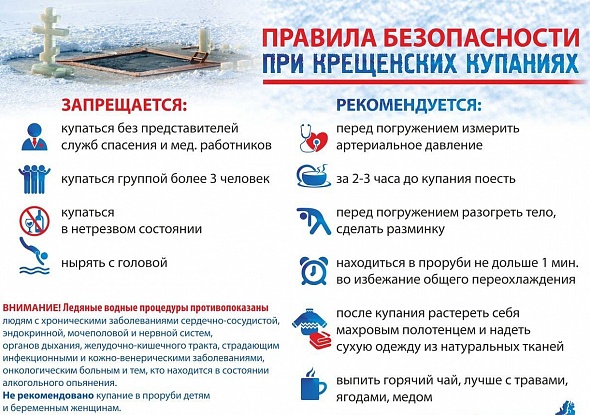 В целях недопущения несчастных случаев в период проведения обрядовых мероприятий при праздновании православного праздника Крещение Господне необходимо соблюдать следующие меры безопасности: