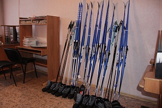 На нижнем фото - приобретенные лыжи, переданные в отряды волонтеров.