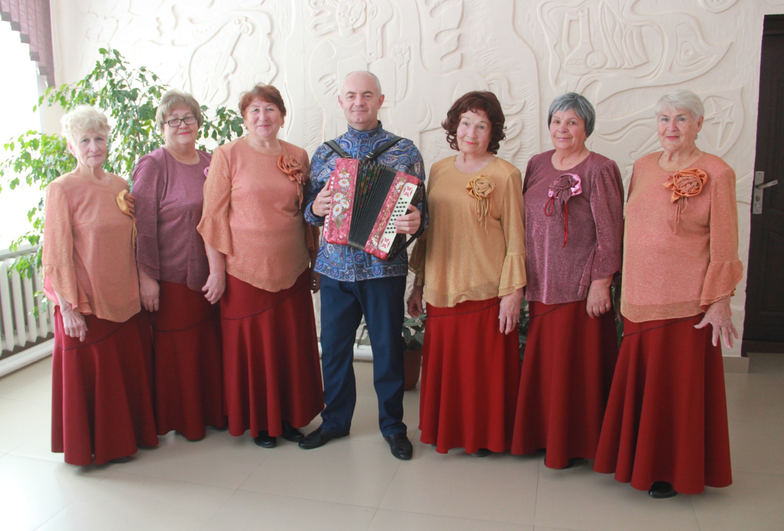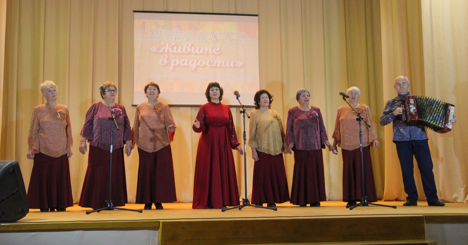 Коллектив-юбиляр нынешнего года (вокальная группа "Родные напевы", руководитель Юлия Матяжова, Карамышевский Дом культуры ) поздравила председатель Союза ветеранов культуры Змеиногорского района Галина Валентиновна Смирнова.