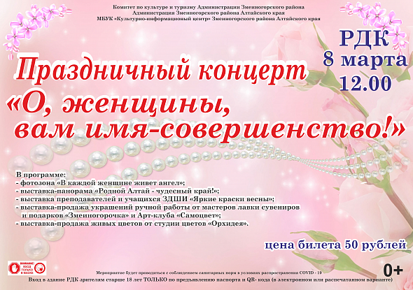 26 марта в 12 часов в Районном Доме культуры пройдет праздничный концерт лучших творческих коллективов Змеиногорского района.