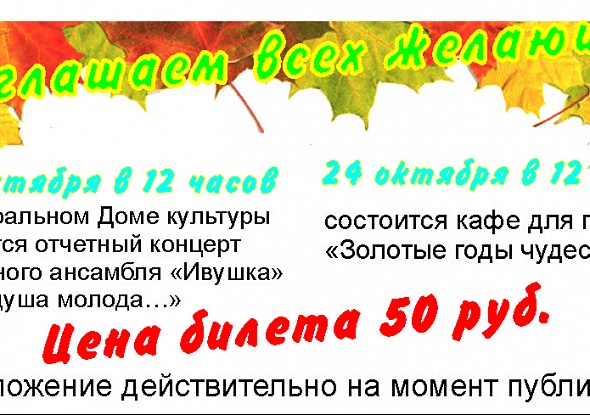 Недавно в музее истории развития горного производства прошла встреча-праздник для пенсионеров города и района в связи с месячником пожилого человека и в связи с 80-летием Алтайского края, где впервые выступил музыкальный ан коллектив, который совсем недавно был создан при библиотеке по желанию самих артистов и никаким образом не связан с деятельностью существующего и активно гастролирующего ансамбля «Ивушка». Просто теперь у любителей народной песни появился еще один любимый коллектив. С чем мы всех и поздравляем!