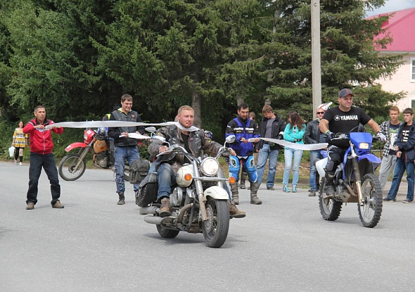 …И снова рев моторов врывается в повседневные звуки города. Змеиногорцы с нескрываемым интересом провожают взглядами колонну мотоэкипажей, которая мчится с развевающимися флагами к стадиону. Впервые 15 августа колонна байкеров приняла участие в открытии 26-й районной олимпиады спортсменов Змеиногорского района.