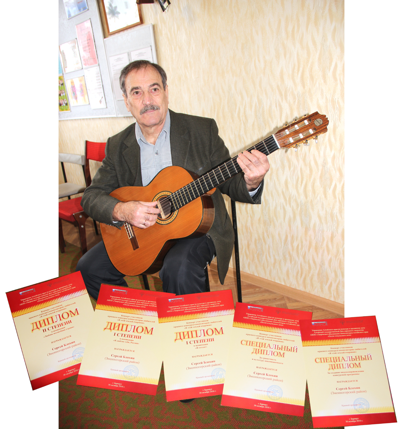 Преподавателю музыкальной школы города Змеиногорска, Сергею Блохину вручили пять дипломов за участие в конкурсе композиторов - любителей Алтайского края, "Я этой землей очарован". Который прошел в городе Барнауле.