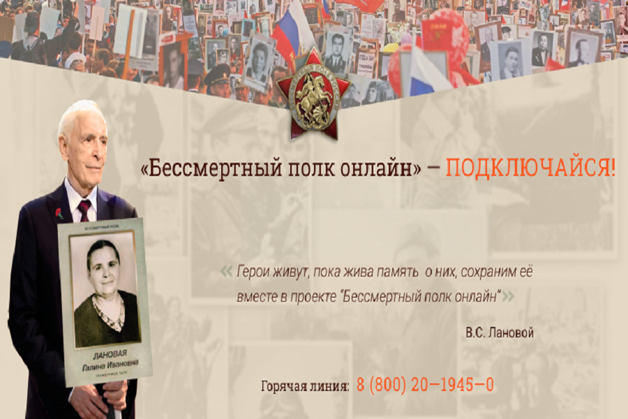 Желающих принять участие в акции «Бессмертный полк онлайн» по любым возникающим вопросам круглосуточно консультируют специалисты горячей линии по телефону 8-800-20-1945-0. Организаторы анализируют поступающие обращения и вносят корректировки в форму подачи заявки. Так, теперь принять участие в виртуальном шествии могут те, у кого не сохранилось фотографий ветеранов, это поле можно оставить пустым. Кроме того, в заявке уже не нужно указывать степень родства с героем, данные которого публикуются, а даты рождения и смерти стали не обязательными для заполнения полями.