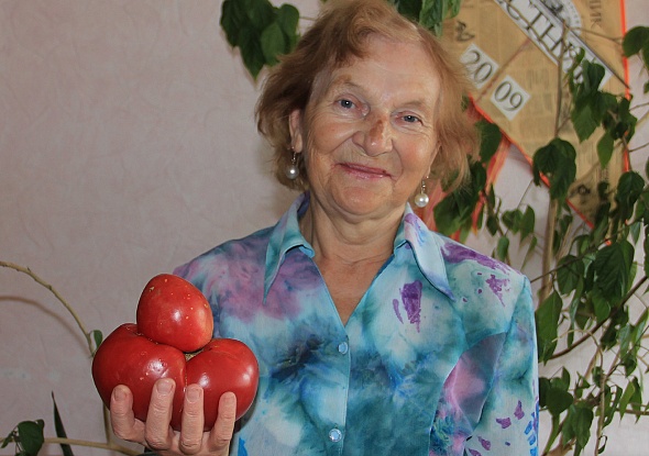 Вот такой большущий помидор в этом году уродился на грядках у Екатерины Ивановны Сычиковой, жительницы Змеиногорска.