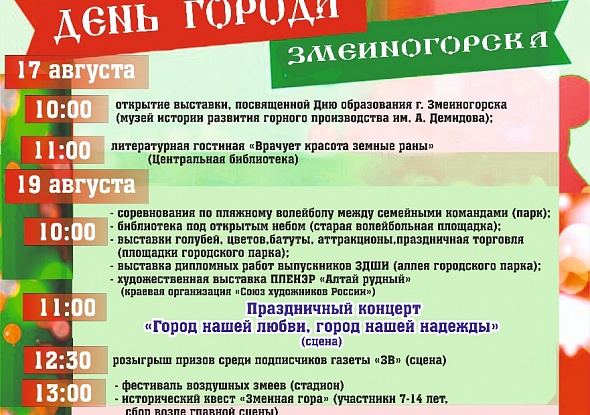 Завтра утром в городском парке Змеиногорска состоится большой праздник.