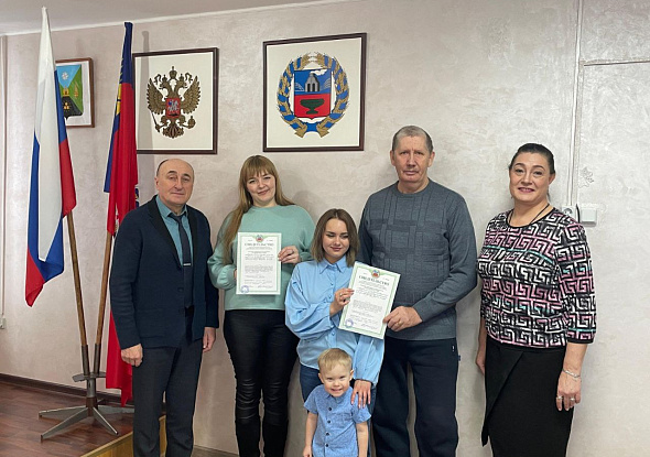 Глава нашего муниципального округа вручил двум семьям - участницам федеральной программы "Обеспечение доступным и комфортным жильем и коммунальными услугами" (г.Змеиногорск) свидетельства о праве на получение социальной выплаты на приобретение жилого помещения.