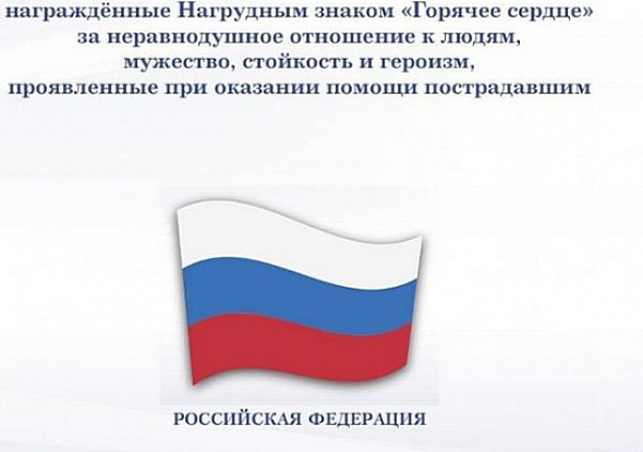 Шесть школьников и три студента из Алтайского края стали лауреатами Всероссийской общественно-государственной инициативы с международным участием «Горячее сердце». Ребята представлены к награждению нагрудным знаком за неравнодушное отношение к людям, мужество, стойкость и героизм, проявленные при оказании помощи пострадавшим. Их имена вошли в электронную версию Почетной книги «Горячее сердце-2023».