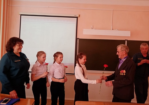 Встреча кадетов МЧС с ветераном пожарной охраны 74 пожарно-спасательной части прошла в Змеиногорской школе №1 накануне профессионального праздника Дня пожарной охраны России