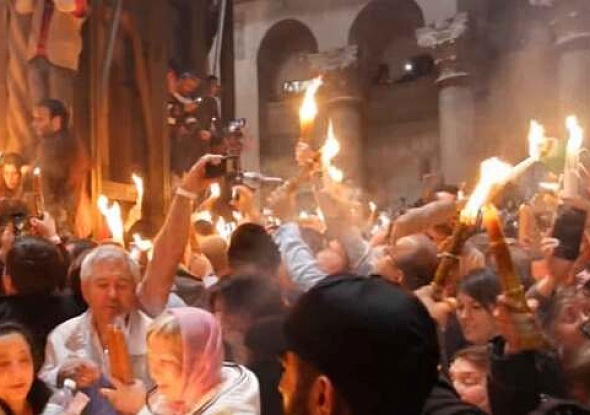Благодатный огонь сошел в храме Гроба Господня в Иерусалиме в Великую субботу перед Пасхой