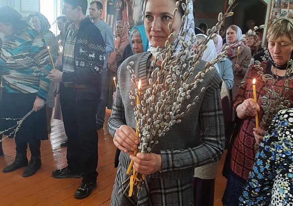 Сегодня в Храме Преображения Господня состоялась служба в честь праздника Входа Господня в Иерусалим, или Вербное воскресенье.