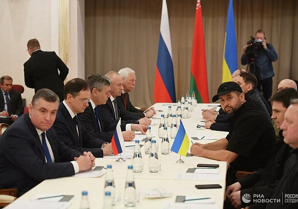 © РИА Новости / Александр Кряжев Переговоры России и Украины в Гомельской области Лукашенко назвал украинских и российских переговорщиков красавцами, а их работу блестящей