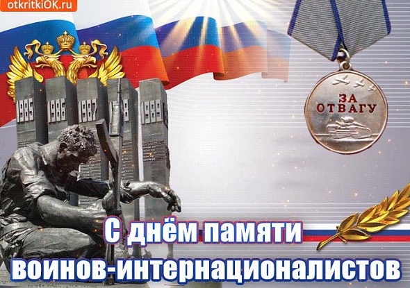 15 февраля 1989 года завершился вывод советских войск из Афганистана. В память о героическом подвиге наших военных, и отдавая дань уважения их подвигу, в память о более 14 тысячах советских солдат и офицеров, не вернувшихся с афганской войны, 15 февраля считается в России Днем памяти воинов-интернационалистов.