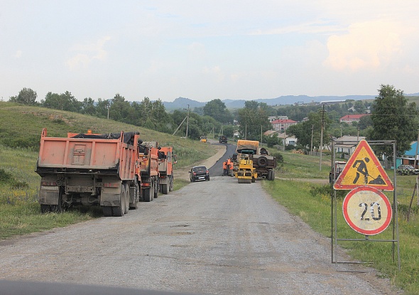 Змеиногорский филиал "Юго-Западного" ДСУ ведет ремонт дороги к поселку Беспаловск.