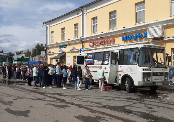 Длинные очереди из горожан можно заметить в центре Барнаула рядом с мобильными пунктами вакцинации от коронавируса.