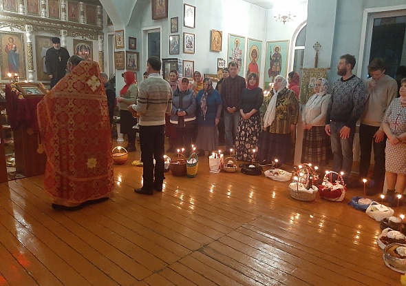Сегодня ночью в Храме Преображения Господня в Змеиногорске состоялось торжественное богослужение в честь Светлого Христова Воскресения.