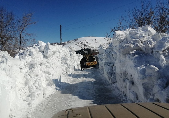 Вот такой вышины снежные тоннели на улице Нагорная.