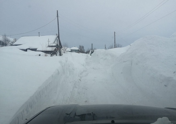 Вот такие сугробы пробивали сегодня на улице Советская.