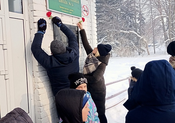 23 февраля в МБОУ Змеиногорская СОШ 1 состоялась акция"Помним своих героев" , на которой педагоги, учащиеся, родители возложили цветы к мемориальной доске в честь выпускника школы В.П.Пирожкова, а также к городскому Мемориалу Славы.