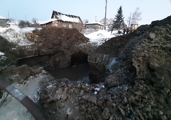 Вот так выглядело место аварии на водосетях на улице Волкова в Змеиногорске.