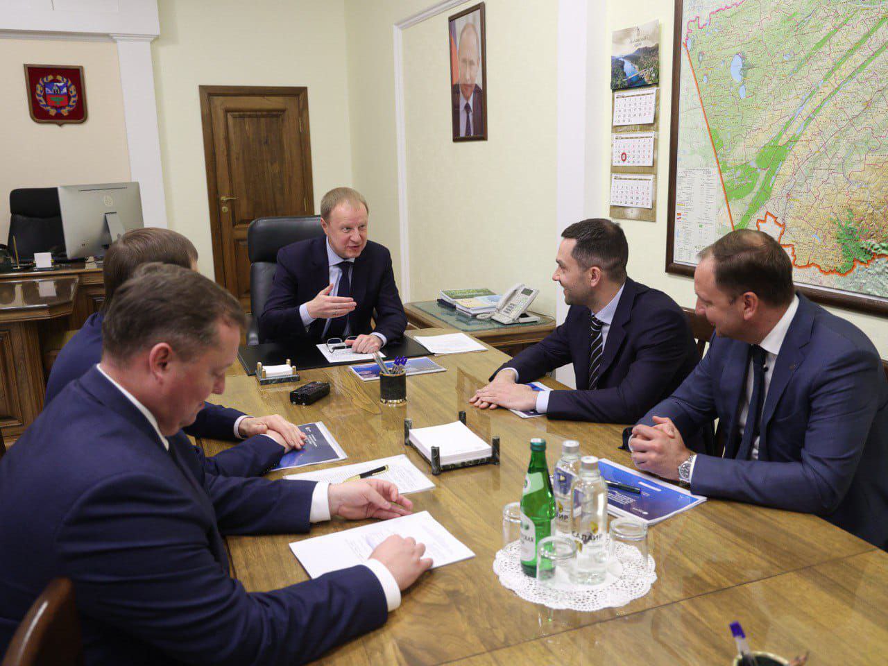 Губернатор Алтайского края Виктор Томенко и генеральный директор «Россети Сибирь» Антон Дьячков обсудили повышение надежности электросетевого комплекса региона