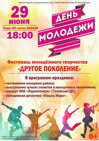 В Змеиногорском районе День молодежи будут праздновать завтра, 29 июня! Смотрите афишу и приходите в городской парк в 18 часов!