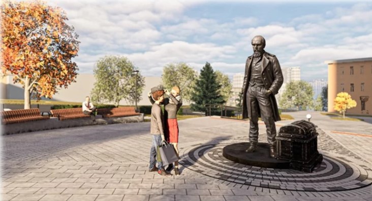 В документации сказано, что у готового объекта должны быть проработаны детали, а портретная часть – "легко читаться". Памятник обязан легко вписываться в окружающее пространство, а элемент в виде дорожного чемодана подрядчик установит рядом с Достоевским, он будет составлять с фигурой писателя "единое целое".