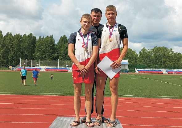 Вы видите на фото двух мальчиков - волейболистов А. Скуратова и Е. Зверева из Змеиногорска вместе с их тренером А. Квастом на пьедестале почета.