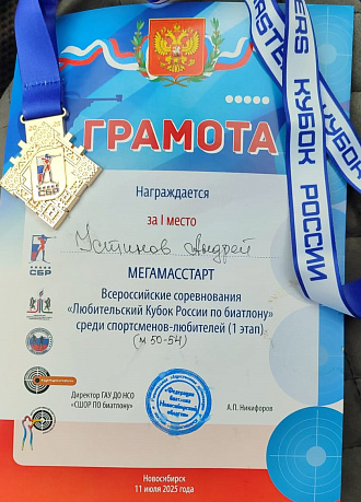 Андрей Устинов, змеиногорский ветеран биатлона принял участие в любительском кубке России по летнему биатлону, который проходил в городе Новосибирск в прошедшие выходные.В гонке Мегамасстарт Андрей, отстрелявшись на ноль! Завоевал первое место и золотую медаль соревнований!
