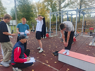 Подтягивание из виса на высокой перекладине. Все участники успешно справились со сдачей нормативов.