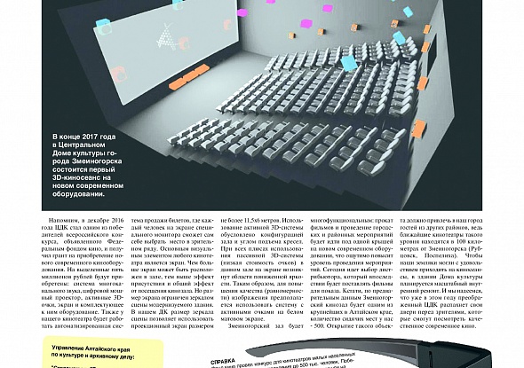 Мы снова и подробно рассказываем о 3D-кинотеатре, который начнут монтировать в городе Змеиногорске.