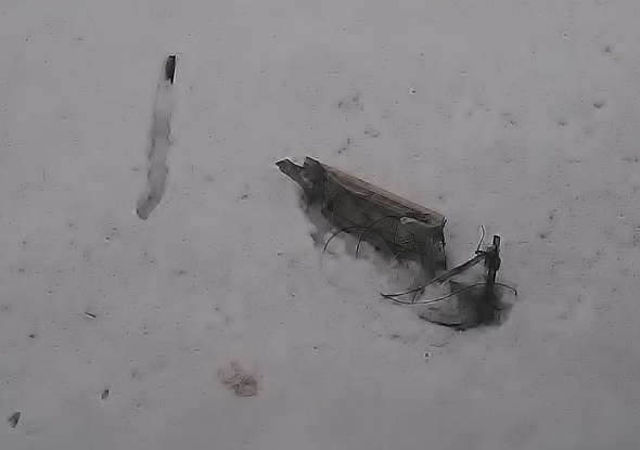 Недавно мы обнаружили под мостом через речку Змеевку отличные санки, которые лежат там уже с месяц! Самое-то для начинающего бобслеиста или скелетониста. Санки в превосходном состоянии… были когда-то…