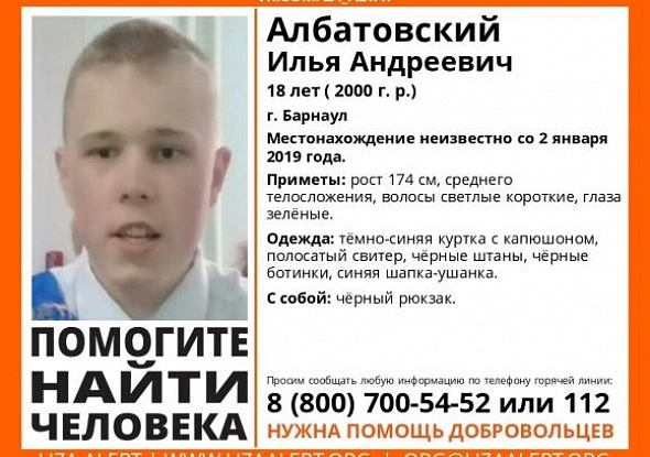 Пропал Албатовский Илья Андреевич, 18 лет