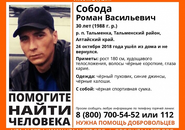 Местонахождение 30-летнего жителя Тальменки не известно с 24 октября