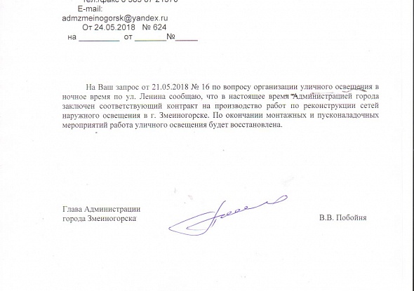 Сегодня мы получили ответ администрации города на запрос редакции по поводу уличного освещения.